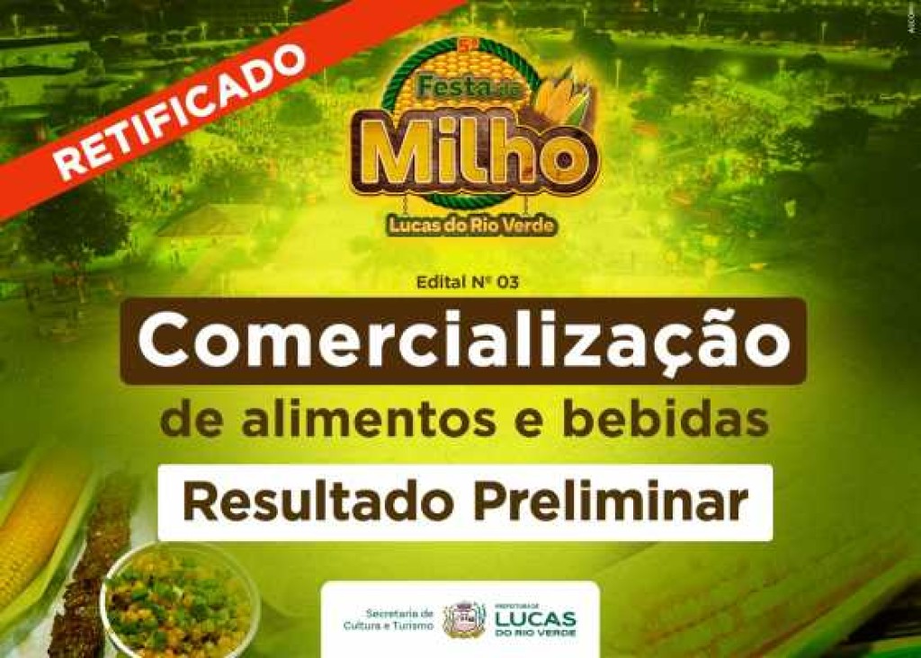 Lucas do Rio Verde Prefeitura divulga resultado preliminar e retificação de edital da 5ª Festa do Milho