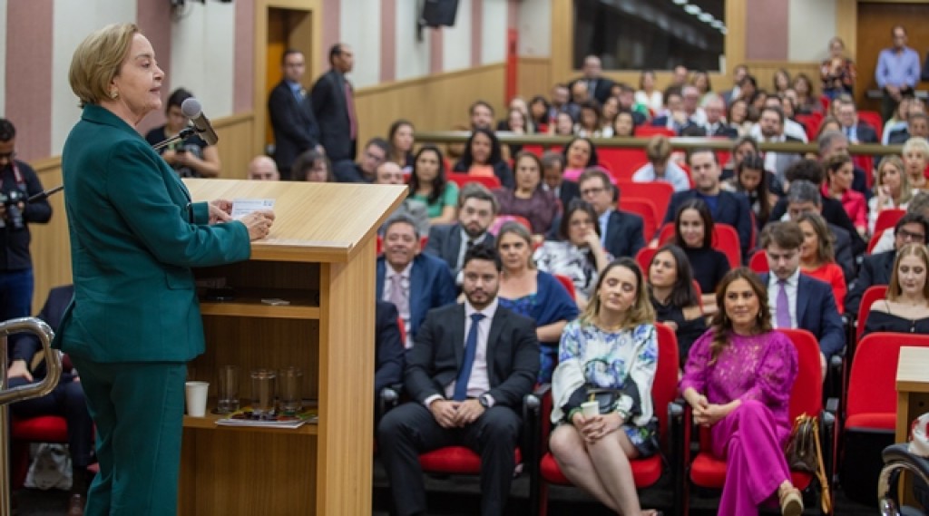 A presidente do Tribunal de Justiça de Mato Grosso (TJMT), desembargadora Clarice Claudino da Silva, participou da cerimônia de posse dos novos procuradores e promotores substitutos