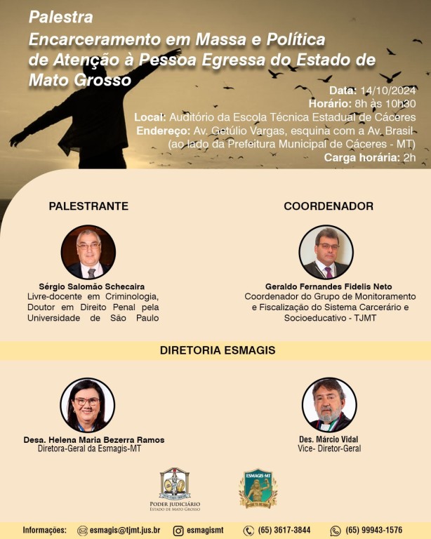 “Encarceramento em massa e Política de Atenção à Pessoa Egressa do Estado de Mato Grosso” é o tema de duas palestras que serão ofertadas pela