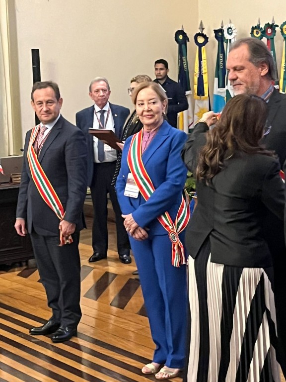 A presidente do Tribunal de Justiça de Mato Grosso, desembargadora Clarice Claudino da Silva, recebeu nesta quinta-feira (3 de outubro) a Medalha da Ordem do