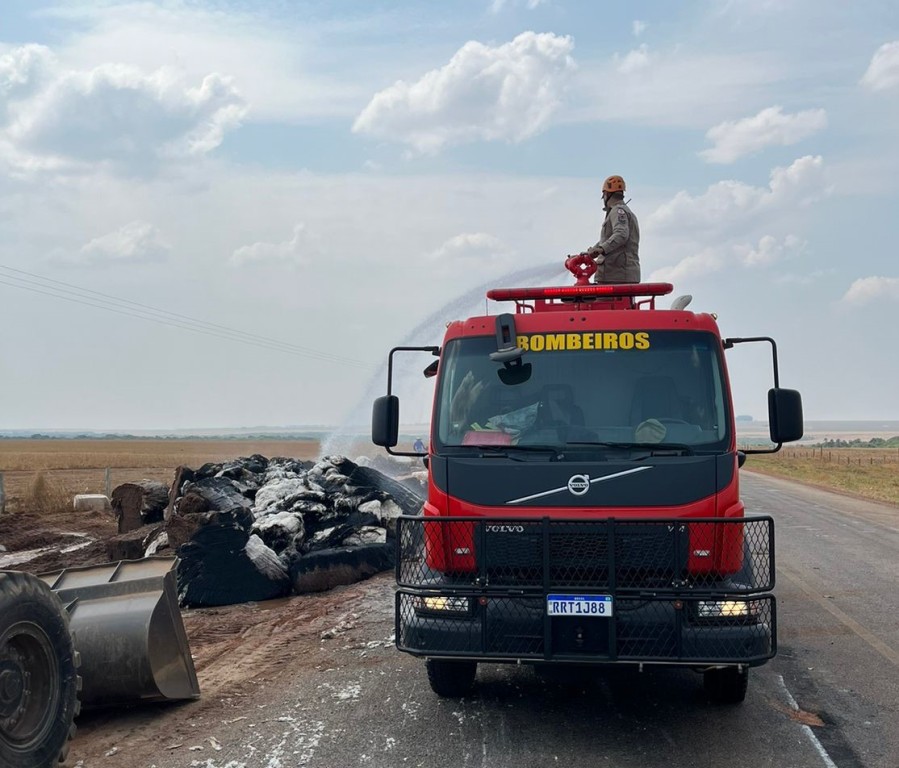 O Corpo de Bombeiros Militar de Mato Grosso (CBMMT) foi acionado, na manhã desta quinta-feira (03.10), para combater um incêndio em um caminhão carregado de