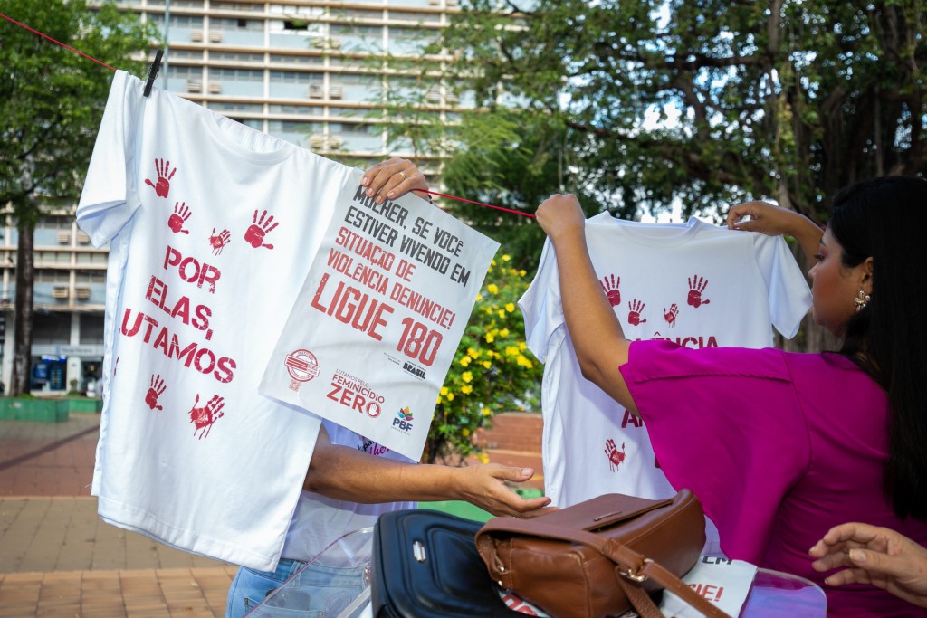 Na tarde desta segunda-feira (25), a Praça Alencastro recebeu o “Varal da Luta”, uma exposição simbólica em alusão ao Dia Internacional pela Eliminação da Violência