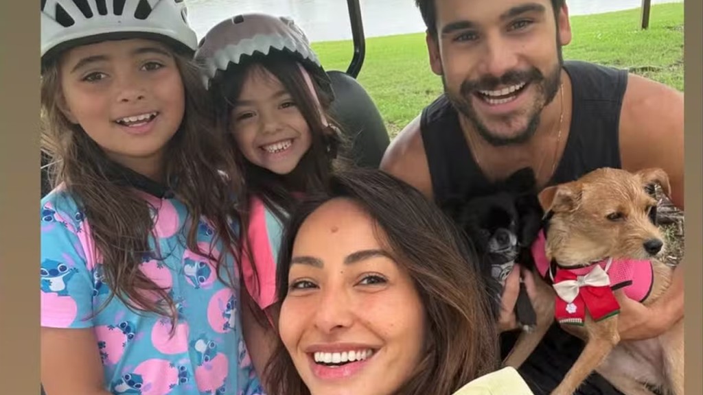 Sabrina Sato, de 43 anos, fez um passeio nesta quinta-feira (26), com o noivo, Nicolas Prattes, de 27, a filha, Zoe, de 6, e a sobrinha, Manuela.