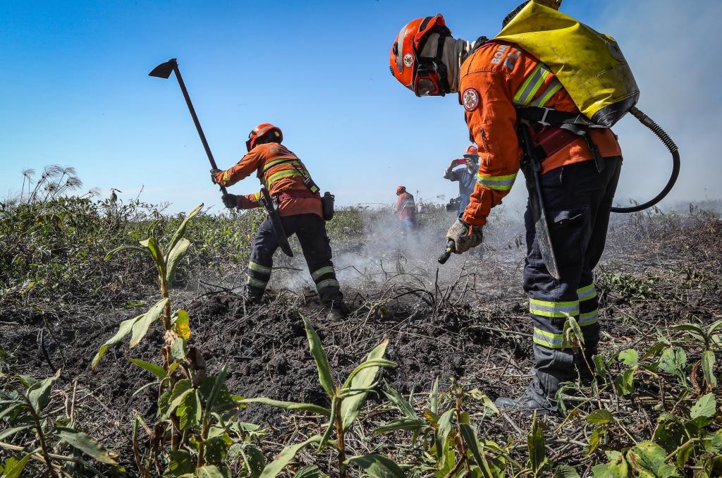 O Corpo de Bombeiros Militar de Mato Grosso (CBMMT) extinguiu, nas últimas 24 horas, quatro incêndios florestais e segue, neste sábado (2.8), combatendo outras cinco