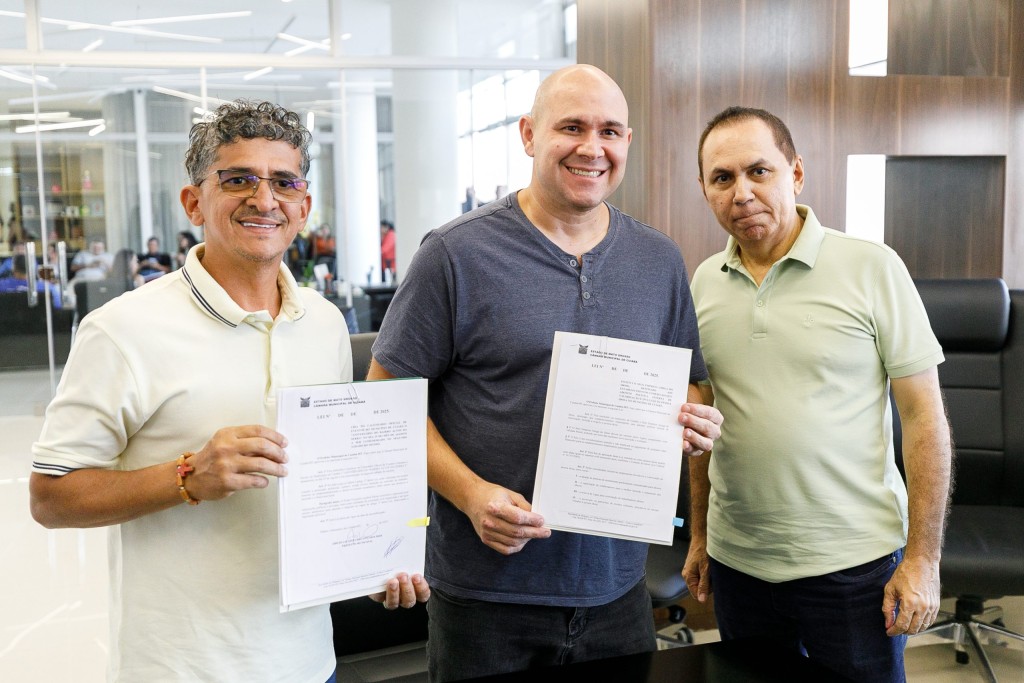 O prefeito de Cuiabá, Abilio Brunini, sancionou na quarta-feira (27), em cerimônia no gabinete do Palácio Alencastro, duas leis de autoria dos vereadores Dilemário Alencar
