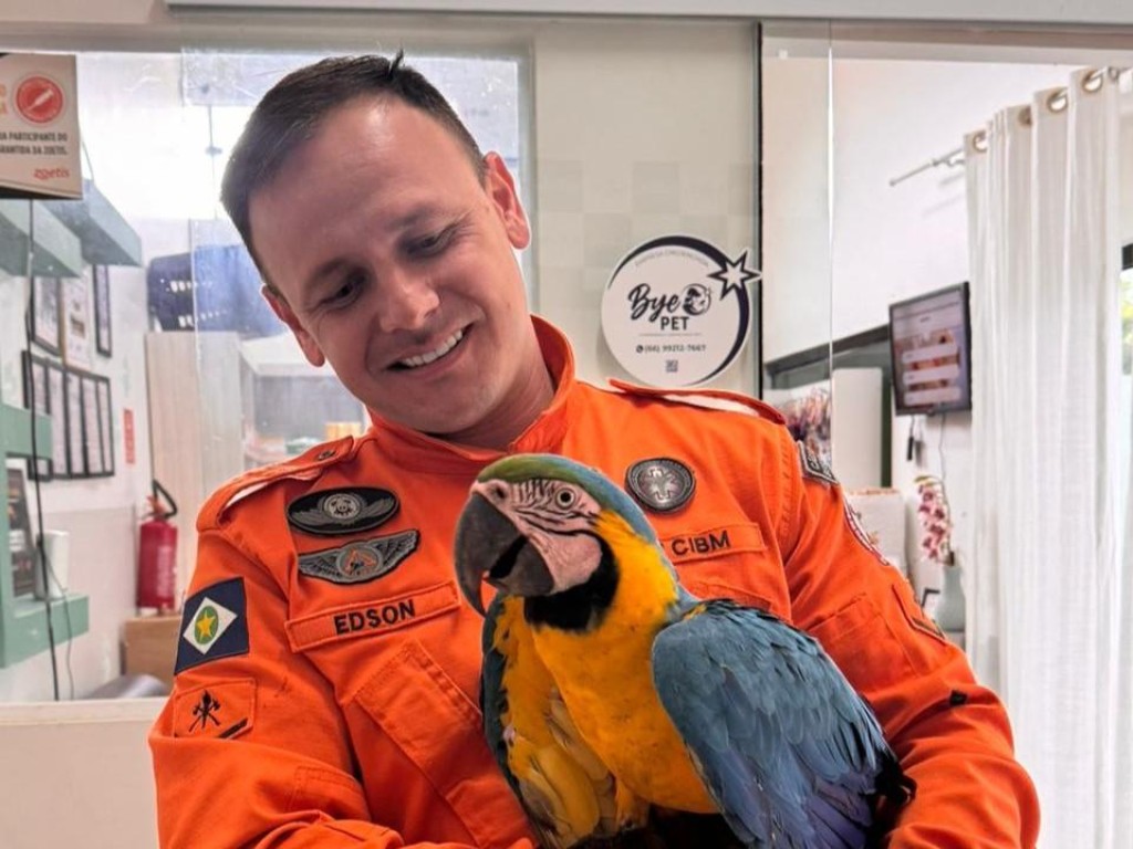 O Corpo de Bombeiros Militar de Mato Grosso (CBMMT) resgatou, na manhã desta segunda-feira (26.1), uma arara-canindé que estava em uma indústria de processamento de