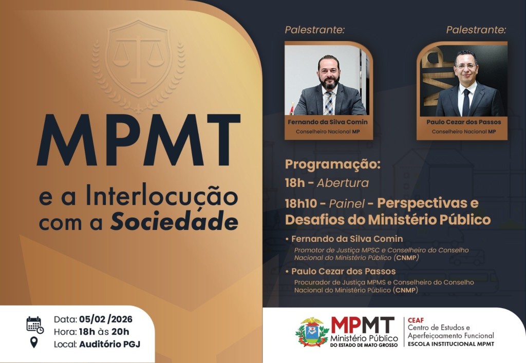 O Ministério Público do Estado de Mato Grosso (MPMT), por meio do Centro de Estudos e Aperfeiçoamento Funcional (Ceaf) – Escola Institucional, promove o seminário