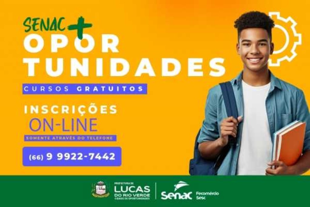 A Prefeitura de Lucas do Rio Verde, em parceria com o Senac, está com inscrições abertas para uma série de cursos gratuitos em áreas com