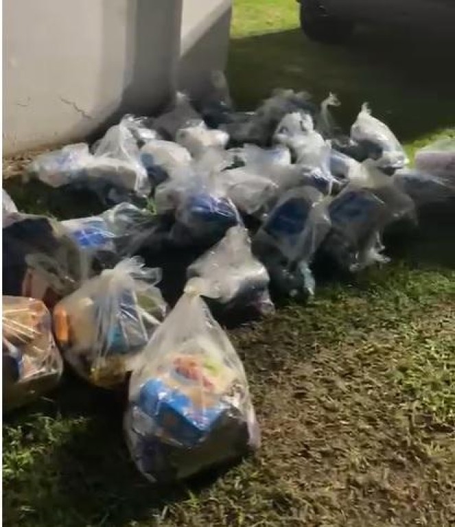 A equipe se deslocou ao endereço com apoio de policiais da Rotam. No local, eles encontraram duas mulheres, uma adolescente e um bebê. Em buscas na residência, foi encontrada uma bolsa com R$ 3.050,00 em espécie, uma porção grande e 20 porções pequenas análogas à cocaína, além de uma balança de precisão. Na residência também foram encontradas 54 cestas básicas armazenadas a mando da facção.