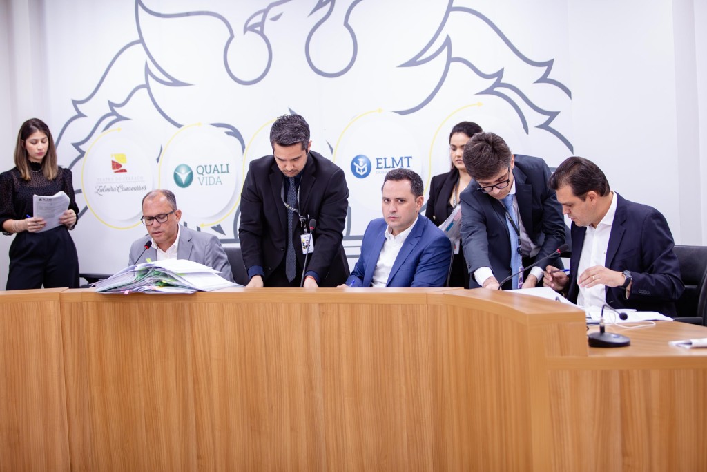 A reunião foi presidida pelo deputado Diego Guimarães (Republicanos) e secretariada pelos deputados Fábio Tardin (PSB) e Thiago Silva (MDB), e contou ainda com a participação remota do deputado Dilmar Dal’Bosco (União).