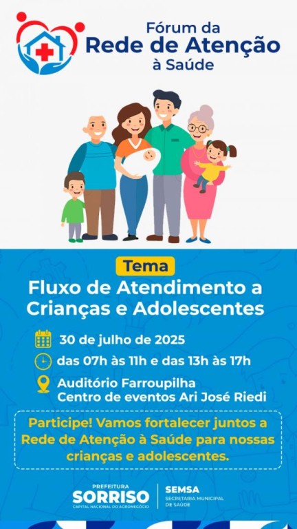 No dia 30 de junho (quarta-feira), o Auditório da Farroupilha, do Centro de Eventos Ari José Riedi, será palco do Fórum da Rede de Atenção à Saúde, idealizado pela Secretaria Municipal de Saúde, por meio da Comissão de Integração de Ensino e Serviço (CIES) e Rede de Atenção Psicossocial (RAPS). O evento acontecerá das 7h às 11h, e à tarde, das 13h às 17h e traz como tema o Fluxo de Atendimento a Crianças e Adolescentes inseridos na Rede de Atenção à Saúde (RAS).