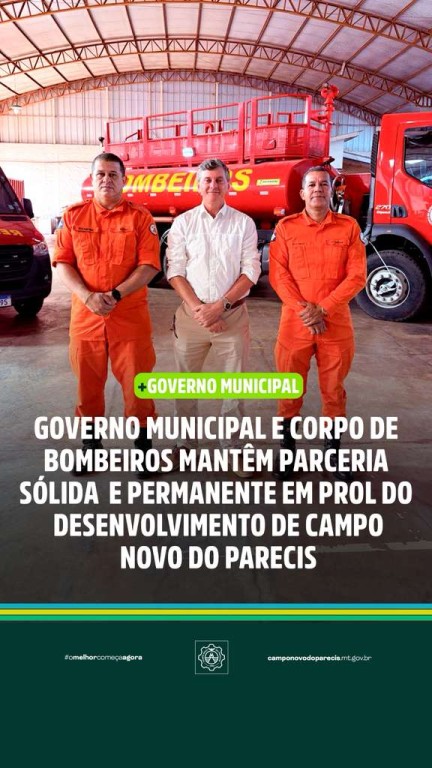 O reconhecimento dessa parceria é fruto do trabalho conjunto, pautado na responsabilidade, na confiança e no compromisso com a vida. Governo Municipal e Corpo de Bombeiros seguem alinhados, mantendo uma relação sólida e essencial para o progresso de Campo Novo do Parecis.