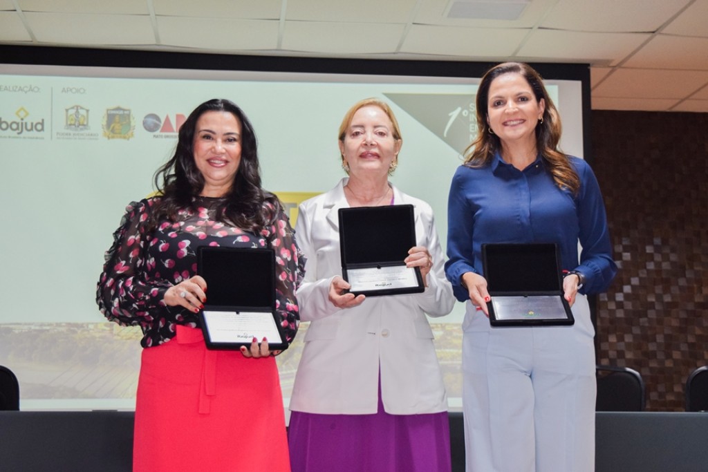 Segundo o presidente do Ibajud, tendo em vista essa atuação do TJMT, foram escolhidos os nomes das homenageadas. “O Ibajud, em todos esses anos de trabalho, também observa nessa caminhada o trabalho de grandes parceiros e personagens, autoridades que estimulam esse aperfeiçoamento e esse diálogo tão importante dentro da comunidade jurídica. E entregar hoje uma placa em homenagem a essas pessoas é prova da capacidade, é uma singela homenagem, mas também é uma honra para o Ibajud trazer esse destaque para essas pessoas tão importantes para o mundo do Direito”. Após receber a placa de condecoração, a desembargadora Clarice Claudino fez um agradecimento e dedicou o reconhecimento com todos os demais membros do Tribunal. “Uma linda homenagem, que eu ofereço e compartilho com todos os nossos desembargadores e desembargadoras porque é um trabalho do Tribunal de Justiça. O empenho, a vontade mesmo de resolver e dar corpo a essas metodologias é compartilhada por todos os membros, então, a eles também eu dedico essa homenagem”.