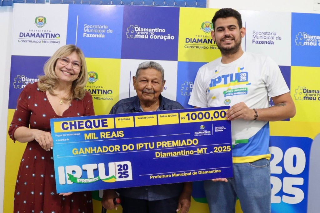 A Prefeitura de Diamantino realizou nesta sexta-feira (26.09) mais uma entrega do prêmio do IPTU Premiado 2025. O sorteado foi o senhor Osvaldo José da Costa, morador Posto Gil, que esteve presente na sede da secretaria municipal de Fazenda para confirmar sua premiação.