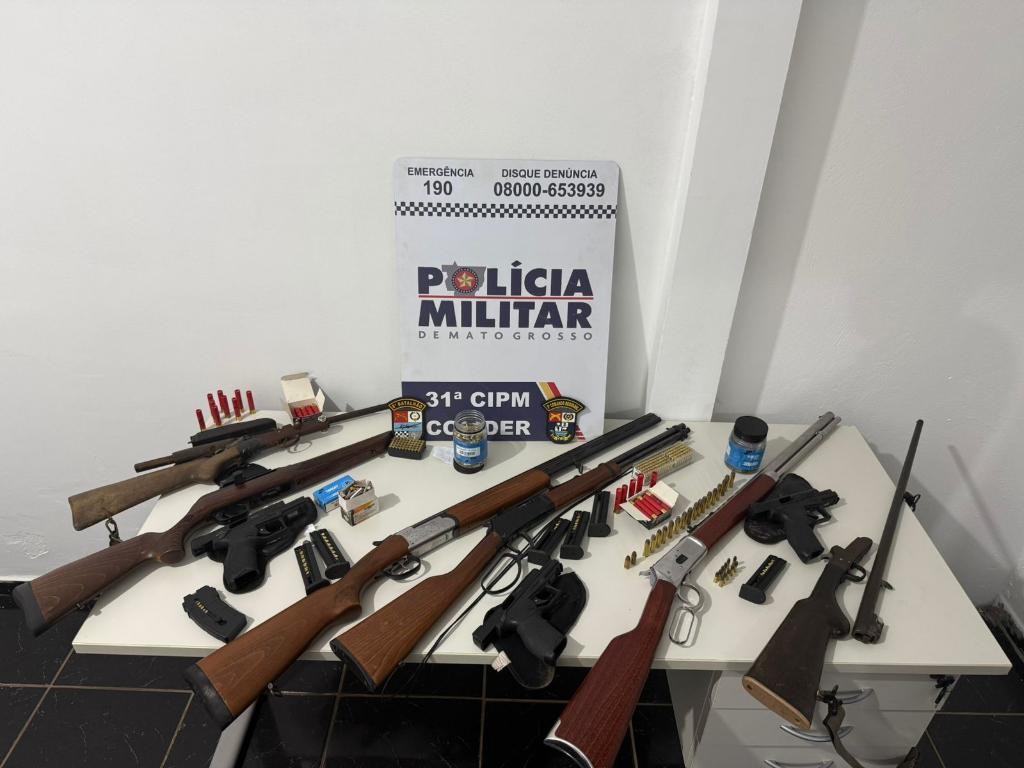 Policiais militares da Patrulha Rural do 9º Comando Regional prenderam cinco homens em flagrante por porte e posse ilegal de arma de fogo, na tarde desta sexta-feira (26.12), na zona rural de Colíder. Com o grupo, foram apreendidas nove armas de fogo, entre espingardas e pistolas, e mais de 500 munições para todo o armamento.