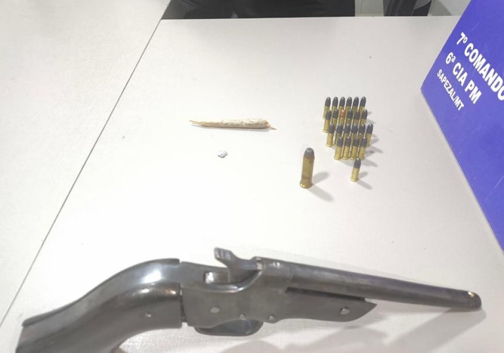 Um homem foi preso na noite deste sábado (3.1), suspeito por tentativa de feminicídio, em Sapezal (a 510 km de Cuiabá). Policiais militares da 6ª Companhia Independente apreenderam uma arma de fogo de fabricação artesanal, 24 munições de calibres diversos e um cigarro análogo à maconha.