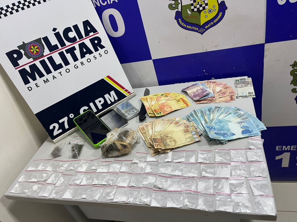 PM prende jovem com porções de drogas e R$ 9,8 mil em dinheiro em Confresa