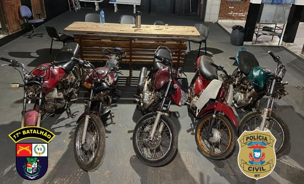 Cinco motocicletas subtraídas do pátio do Ciretran do município de Mirassol D’Oeste foram recuperadas pela Polícia Civil, com apoio da Polícia Militar, poucos dias após o crime.