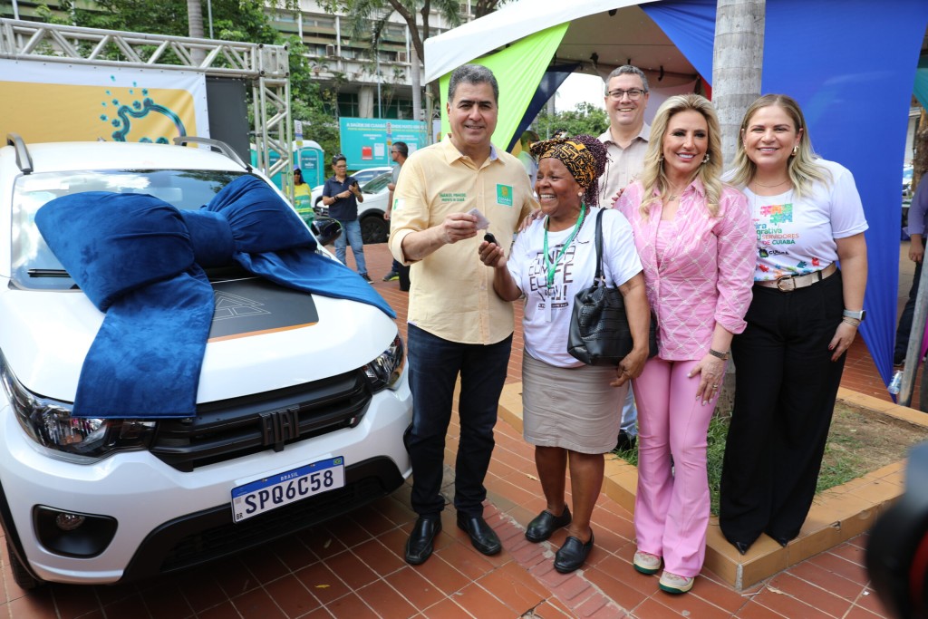 A vencedora do primeiro prêmio foi a servidora Renata da Silva, da Secretaria Municipal de Saúde (SMS), que apresentou o projeto ‘Práticas Sustentáveis em Unidades de Saúde’. Como estava em viagem, foi representada por sua tia, que recebeu o prêmio com emoção. “Eu vim e falei para ela que traria o carro. Eu creio em Deus. Ela precisava muito desse carro. Renata trabalha no Pronto Socorro Municipal de Cuiabá (PSMC) e é sanitarista, formada em Saúde Coletiva”, comentou a tia de Renata.