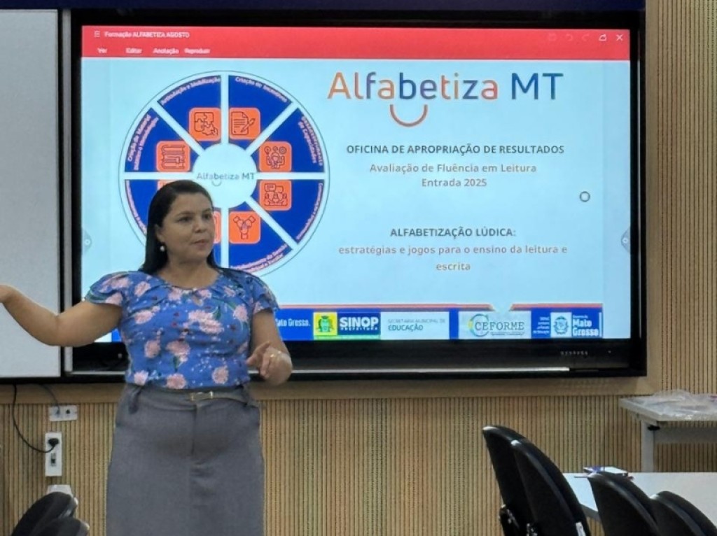 A Prefeitura de Sinop, por meio da Secretaria de Educação, promoveu nos dias 18 e 19 de agosto, no Centro de Formação Continuada (Ceforme), a formação do programa Alfabetiza MT, destinada a professores dos 1º e 2º anos do ensino fundamental. A iniciativa, desenvolvida em parceria com o Governo do Estado, teve como foco a oficina de Apropriação de Resultados – Avaliação de Fluência em Leitura (Entrada 2025) e a aplicação de estratégias lúdicas para fortalecer o processo de alfabetização.