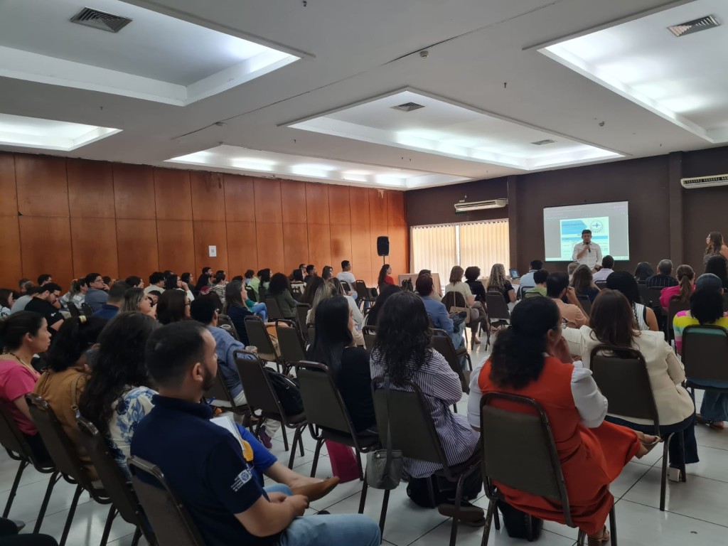 Na parte da tarde, Claudete apresentou o processo de elaboração do PTA 2026 na SES, enquanto a assistente social e coordenadora de Gestão Pedagógica da Escola de Saúde Pública (ESP), Raquel Arévalo de Camargo, apresentou a palestra “SUS como Escola”.